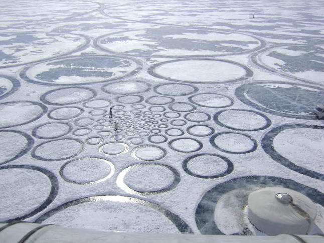 ปรากฏการณ์หากยาก ที่น้ำแข็งเกิดเป็นรอยวงกลม สาเหตุเกิดจากการแข็งตัวของน้ำกลายเป็นน้ำแข็งจากจุดศูนย์กลางไปเรื่อยๆ จนถึงขอบวงกลม โดยขนาดใหญ่ที่เคยพบมีเส้นผ่าศูนย์กลางถึง 150 เมตร