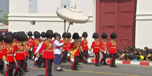 “สมเด็จพระเจ้าอยู่หัวมหาวชิราลงกรณ บดินทรเทพยวรางกูร ขณะเสด็จพระราชดำเนินร่วมขบวนพระอิสริยยศอัญเชิญพระบรมโกศทองใหญ่ พระบาทสมเด็จพระปรมินทรมหาภูมิพลอดุลยเดช บรมนาถบพิตร สู่ พระเมรุมาศ ณ มณฑลพิธีท้องสนามหลวง”