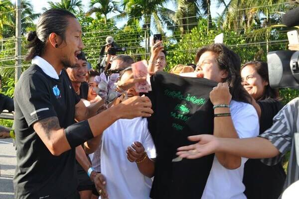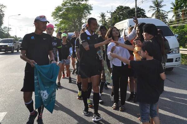 Azman.Online -พิษแฟนคลับดึง “ตูน” ถ่ายภาพทำให้ทีมงานต้องปรับเวลาวิ่งเข้าสุราษฎร์ฯ ล่าช้ากว่ากำหนดกว่า 2 ชั่วโมง หลังมีอาการเจ็บเท้า ออกจากจุดสตาร์ทบ้านเขาฝ้าย อ.สิชล จ.นครศรีธรรมราช เวลา 07.20 น. มี ผอ.รพ.สุราษฎร์ธานีและทีมแพทย์ไปรับและร่วมวิ่งเข้าสู่จังหวัดสุราษฎร์ธานีพรุ่งนี้พักวิ่งหนึ่งวัน เข้ารับสิ่งของพระราชทานจากสมเด็จพระเจ้าอยู่หัวฯ เมื่อเวลา 07.20 น.วันนี้ ( 14 พ.ย. 60 ) ตูน บอดี้สแลม และคณะ ได้เริ่มวิ่งจากจุดสตาร์ทบ้านเขาฝ้าย อ.สิชลรอยต่อกับ อ.ขนอม จ.นครศรีธรรมราช