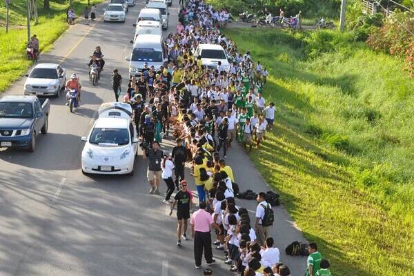 มาตามถนนทางหลวงหมาย เลข 401 นครศรีธรรมราช-สุราษฎร์ธานี โดยมี นายแพทย์สุพจน์ ภูเก้าล้วน ผู้อำนวยการโรงพยาบาลสุราษฎร์ธานี และคณะแพทย์ จ.สุราษฎร์ธานี ไปร่วมต้อนรับและร่วมวิ่งจากจุดสตาร์ทในช่วงเช้าวันนี้ และคาดว่าอาจจะวิ่งเข้าสู่บ้านหินเหล็กไฟ หมู่ที่ 15 ต.ปากแพรก อ.ดอนสัก จ.สุราษฎร์ธานี ในเวลาประมาณ 12.00 น.วันนี้ โดยมีนายแพทย์ขจรศักดิ์ แก้วจรัส สสจ.จังหวัดสุราษฎร์ธานี ได้รับมอบหมายจากนายวิชวุทย์ จินโต ผู้ว่าราชการจังหวัดเป็นผู้แทนเดินทางรับคณะที่บริเวณรอยต่อเขตนครศรีธรรมราช-สุราษฎร์ธานี พร้อมวิ่งนำเขาสู่พื้นที่ โดยในวันนี้มีการปรับเวลาการวิ่งล่าช้าออกไป 2 ชั่วโมง