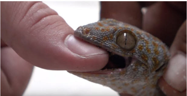 ลองกัดนิ้วอีก ผลสุดท้ายเค้ากล่าวว่า กลัวในตอนแรกแต่พอให้มันกัดแล้วก็เหมือนกับสำนวนภาษาอังกฤษที่ว่า “A Dog’s bark is worse than his bite” แปลเป็นไทยว่าเสียงมันน่ากลัวกว่าเมื่อมันกัด และสรุปนี้ก็หมายถึงตุ๊กแกมันน่ากลัวแต่เวลามันกัดแล้วไม่เจ็บ