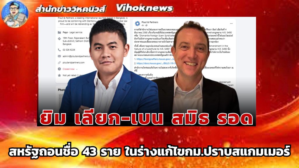 ยิม เลียก-เบน สมิธ รอด !! สหรัฐถอนชื่อ 43 ราย ในร่างแก้ไขกม.ปราบสแกมเมอร์
