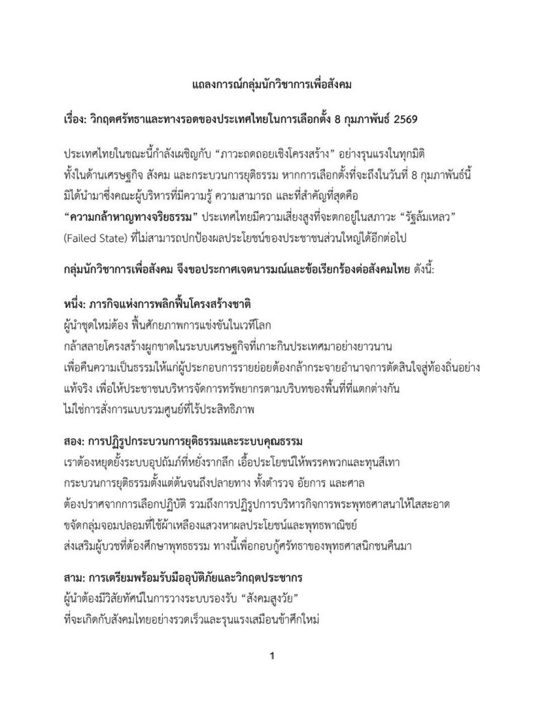 แถลงการณ์กลุ่มนักวิชาการเพื่อสังคม
