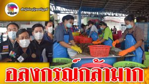 อลงกรณ์”ชื่นชมตลาดกลางกุ้งสมุทรสาครคุมเข้มมาตรการโควิด19 สร้างความเชื่อมั่นทำยอดขายพุ่ง พร้อมเชิญชวนคนไทยซื้อกุ้งช่วยชาวประมง