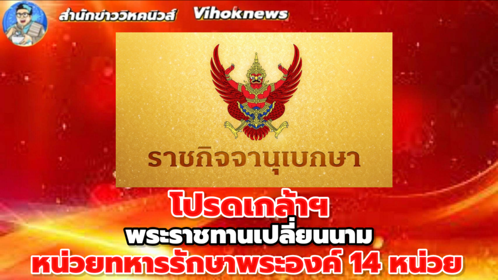 ราชกิจจานุเบกษา เผยแพร่ประกาศ ทรงพระกรุณาโปรดเกล้าฯ พระราชทานพระบรมราชานุญาตเปลี่ยนนาม หน่วยทหารรักษาพระองค์ จำนวน 14 หน่วย