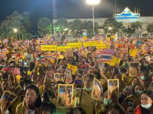 โดยมีประชาชนเฝ้า ฯ รับเสด็จท่าอากาศยานทหารกองบิน 23 จังหวัดอุดรธานี จำนวนมาก