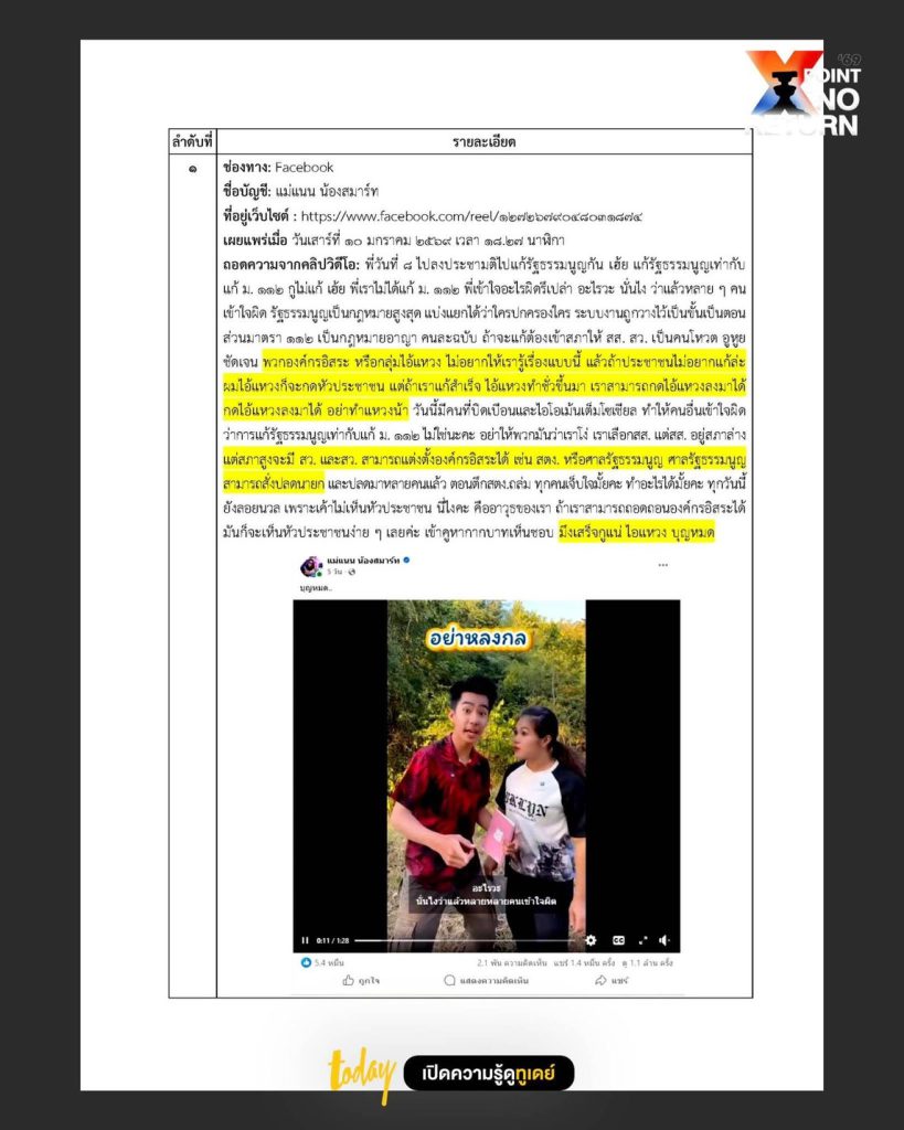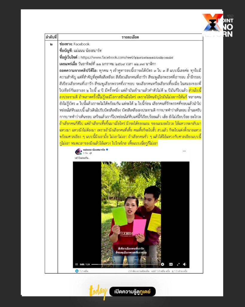 เอกสารข่าวประชาสัมพันธ์ของ กกต. ระบุรายละเอียดเพิ่มเติมถึงคลิปที่สั่งลบจำนวน 3 คลิป พร้อมเน้นข้อความ โดยมีข้อสังเกตปรากฎคำว่า “แหวง บุญหมด” “ศาลเอียง” และการฮั้ว สว. พร้อมกล่าวถึงศาลรัฐธรรมนูญและองค์กรอิสระ เช่น สตง. และ กกต.