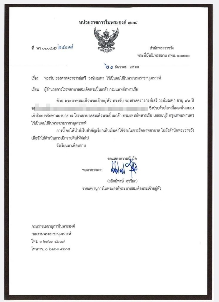 ในหลวง ทรงรับ เสรี วงษ์มณฑา ป่วยโรคเนื้องอกในสมอง ไว้เป็นคนไข้ในพระบรมราชานุเคราะห์