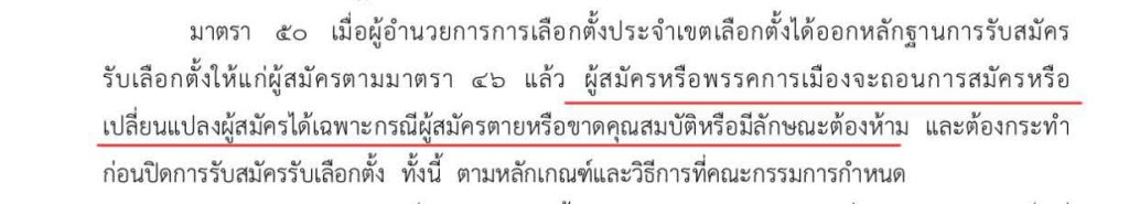 ฝาก กกต ดูพรบประกอบรัฐธรรมนูญ เลือกตั้ง สส มาตรา50 นี้ ให้ดีๆ ว่า จะเปลี่ยนตัวผู้สมัครสสแทน ผู้สมัครคนที่มีปัญหาได้จริงหรือ เพราะว่าตอนสมัคร สส คุณสมบัติครบ แต่มาลาออกตอนถูกตำรวจจับจึงลาออกเพื่อให้ขาดคุณสมบัติ แล้วพรรคจะได้สรรหาผู้สมัครใหม่แล้วส่งสมัครแทน ไม่น่าจะถูกต้องกฎหมายนักนะครับ