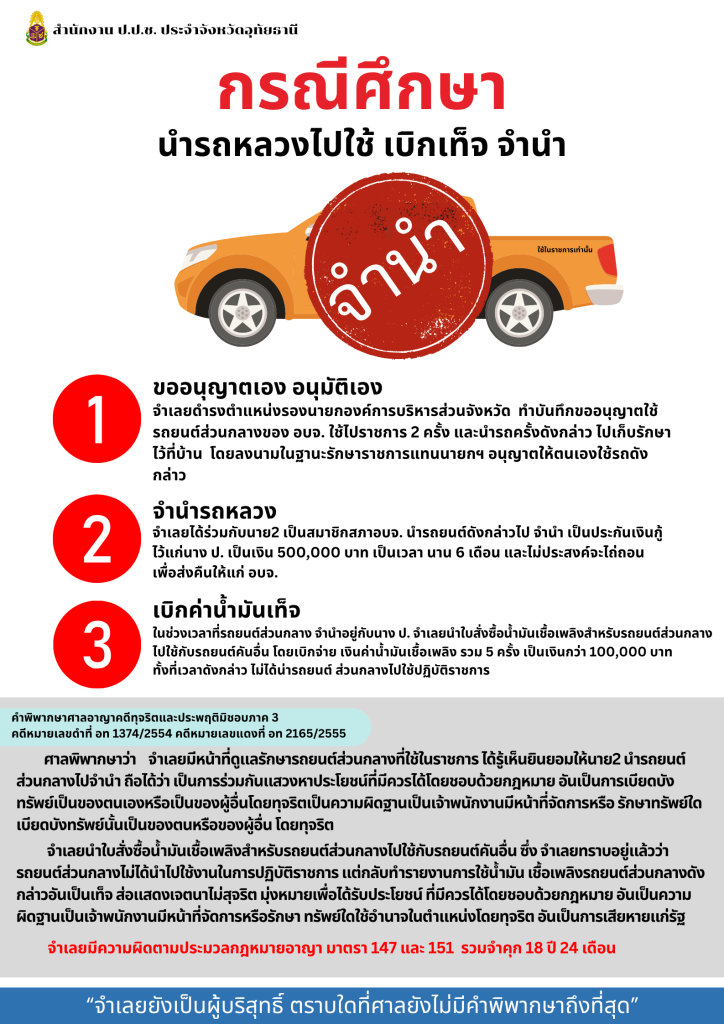 คุก18 ปี 24 เดือน !! ใช้รถหลวง แถมโกงน้ำมัน อดีตท้องถิ่นจังหวัด ไม่รอลงอาญา