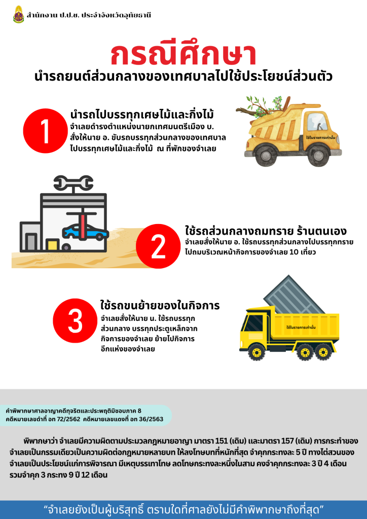 ป.ป.ช. เผยแพร่ความคืบหน้าผลคดีกล่าวหา ‘กิจชัย กุลสัมฤทธิ์’ อดีตท้องถิ่นจังหวัดอุทัยธานี นำรถยนต์ส่วนกลางราชการไปใช้เป็นประโยชน์ส่วนตัว พ่วงใช้บัตรน้ำมันหลวงเติมรถส่วนตัวด้วย ล่าสุด ศาลอาญาคดีทุจริตประพฤติมิชอบกลาง พิพากษาลงโทษจำคุก 6 กระทง รวม 18  ปี 24 เดือน ไม่รอลงอาญา