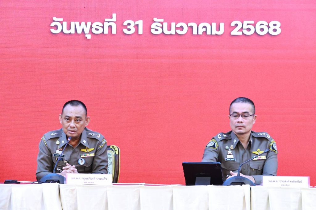 31 ธ.ค. 68 – ที่สำนักงานตำรวจแห่งชาติ พล.ต.ต.จรูญเกียรติ ปานแก้ว รอง ผบช.ก. พร้อม พล.ต.ต.ประสงค์ เฉลิมพันธุ์ ผบก.ปปป. แถลงข่าวชี้แจงความคืบหน้ากรณีการสืบสวนสอบสวนข้อเท็จจริง กรณีเจ้าหน้าที่รัฐถูกกล่าวหาว่ามีส่วนเกี่ยวข้องกับการรับผลประโยชน์และติดสินบนคณะกรรมการป้องกันและปราบปรามการทุจริตแห่งชาติ (ป.ป.ช.)