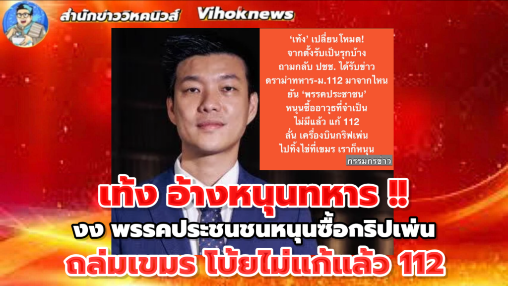 ‘เท้ง’ เปลี่ยนโหมด! จากตั้งรับเป็นรุกบ้าง ถามกลับประชาชน ได้รับข่าวดราม่าทหาร-ม.112 มาจากไหน ยัน ’พรรคประชาชน‘ หนุนซื้ออาวุธที่จำเป็น-ไม่มีแล้ว แก้ 112 ลั่น เครื่องบินกริฟเพ่นที่ไปทิ้งไข่ที่เขมร เราก็หนุน