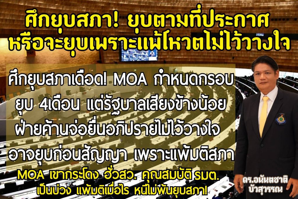 “MOA บังคับยุบ 4 เดือน…แต่ฝ่ายค้านเร่งศึกไม่ไว้วางใจ อาจปิดเกมเร็วกว่าที่คิด!”