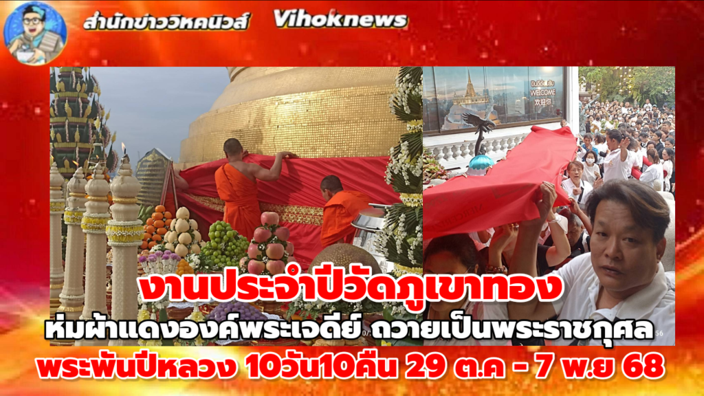 เตรียมตัวมาเที่ยว งานวัด กรุงเทพ กันที่ งานภูเขาทอง 2568 หรือ ประเพณีห่มผ้าแดง บูชาพระบรมมาสารีริกธาตุ องค์พระเจดีย์บรมบรรพต ที่ วัดสระเกศราชวรมหาวิหาร โดย งานนมัสการพระบรมสารีริกธาตุ ภูเขาทอง 2568 นี้ จัดขึ้นในตั้งแต่ วันที่ 29 ตุลาคม – 7 พฤศจิกายน 2568 เป็นเวลา 10 วัน 10 คืน กันเลยค่ะ