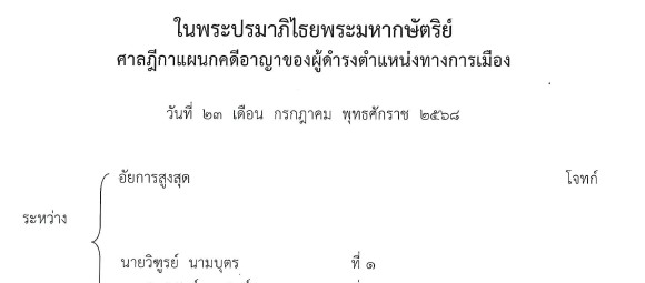 สำนักข่าวอิศรา (www.isranews.org) รายงานว่า ศาลฎีกาแผนกคดีอาญาของผู้ดำรงตำแหน่งทางการเมือง มีคำพิพากษา เมื่อ วันที่ 23 กรกฎาคม 2568 ให้ลงโทษจำคุก 3 ปี นายวิฑูรย์ นามบุตร อดีต รองหัวหน้าพรรค รัฐมนตรีว่าการกระทรวงการพัฒนาสังคมและความมั่นคงของมนุษย์ ในยุครัฐบาลนายอภิสิทธิ์ เวชชาชีวะ และ อดีตสมาชิกสภาผู้แทนราษฎร (สส. ) จ.อุบลราชธานี สส.บัญชีแบบรายชื่อ พรรคประชาธิปัตย์ และ กรรมาธิการวิสามัญพิจารณาร่างพระราชบัญญัติงบประมาณรายจ่ายประจำปีงบประมาณ พ.ศ. 2556 ถึง พ.ศ. 2557 เรียกเงินจากผู้เสียหาย 30 ล้านบาท