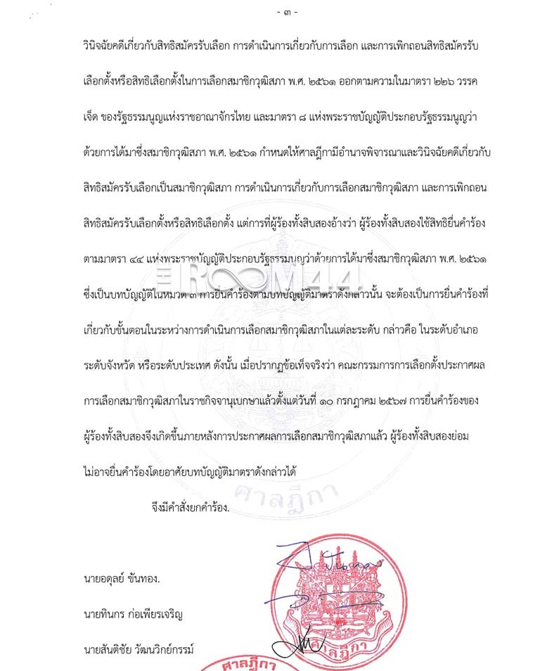 ดังนั้น เมื่อปรากฏข้อเท็จจริงว่า คณะกรรมการการเลือกตั้งได้ประกาศผลการเลือกสมาชิกวุฒิสภาในราชกิจจานุเบกษาแล้วตั้งแต่วันที่ 10 กรกฎาคม 2567 การยื่นคำร้องของผู้ร้องทั้งสิบสองจึงเกิดขึ้นภายหลังการประกาศผลการเลือกสมาชิกวุฒิสภาแล้ว ผู้ร้องทั้งสิบสองย่อมไม่อาจยื่นคำร้องโดยอาศัยบทบัญญัติมาตราดังกล่าวได้ศาลฎีกาจึงมีคำสั่งยกคำร้อง