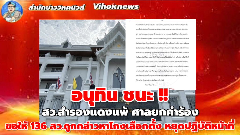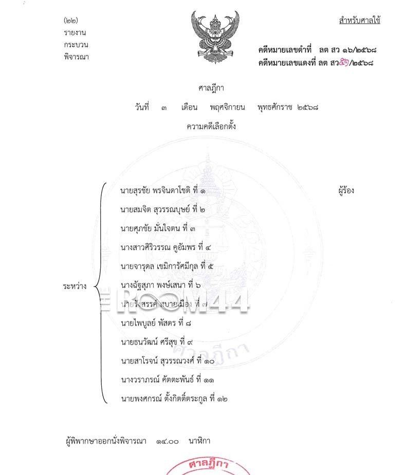 วันที่ 3 พ.ย. 2568 แหล่งข่าว The Room 44 เปิดเผยเอกสาร ศาลฎีกา ยกคำร้อง สว. สำรอง ปมร้องขอให้สว. จำนวน 136 คน หยุดปฎิบัติหน้าที่เป็นการชั่วคราว โดยในเอกสาร ระบุว่า”คดีเลือกตั้ง ได้แก่ผู้ร้องทั้ง 12 คน นายสุรชัย พรจินดาโชติ , นายสมจิต สุวรรณบุษย์ , นายศุภชัย มั่นใจตน , นางสาวศิริวรรณ คูอัมพร ,นายจารุดล เขมิการัศมีกุล ,นางฉัฐสุภา พงษ์เสนา ,นายรังสรรค์ สบายเมือง ,นายไพบูลย์ พัสดร ,นายธนวัฒน์ ศรีสุข ,นายสาโรจน์ สุวรรณวงศ์ , นางวราภรณ์ คัตตะพันธ์ ,นายพงศกรณ์ ตั้งกิตติ์ตระกูล