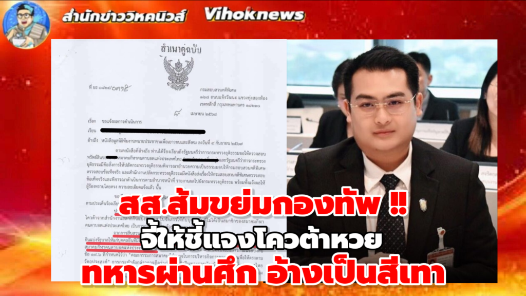 ส.ส.ปชน. ถามหา รมต.กลาโหม จี้ เคลียร์ปมโควต้าหวยสีเทา คืนความโปร่งใสให้อผศ.