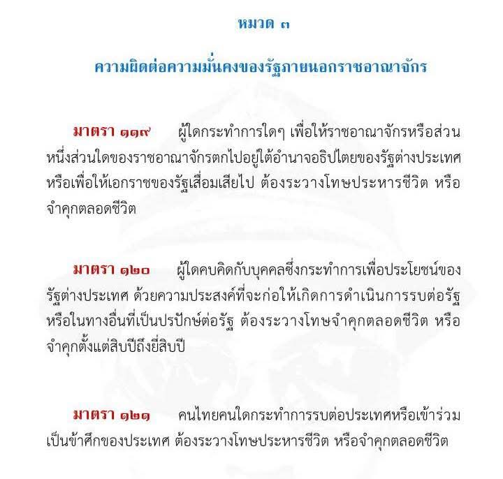 ไอ้โม่งที่สั่งให้อดีตแม่ทัพภาค2 หยุดยิงในคราวปกป้องอธปไตย โดยเป็นประโยชน์ต่ออริราชศัตรู เข้าข่ายความผิดต่อความมั่นคงของรัฐภายนอกราชอาณาจักร ตามประมวลกฎหมายอาญา หมวด3 ต้องโทษสูงสุดถึงประหารชีวิต