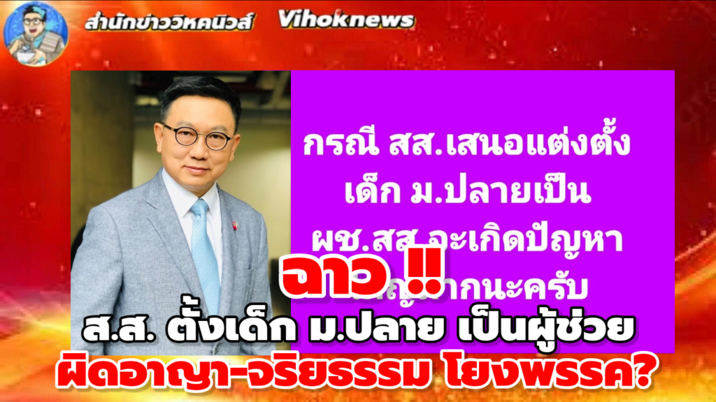 ข่าวประจำวัน » ฉาว !! ส.ส. ตั้งเด็ก ม.ปลาย เป็นผู้ช่วย: ผิดอาญา-จริยธรรม โยงพรรค?