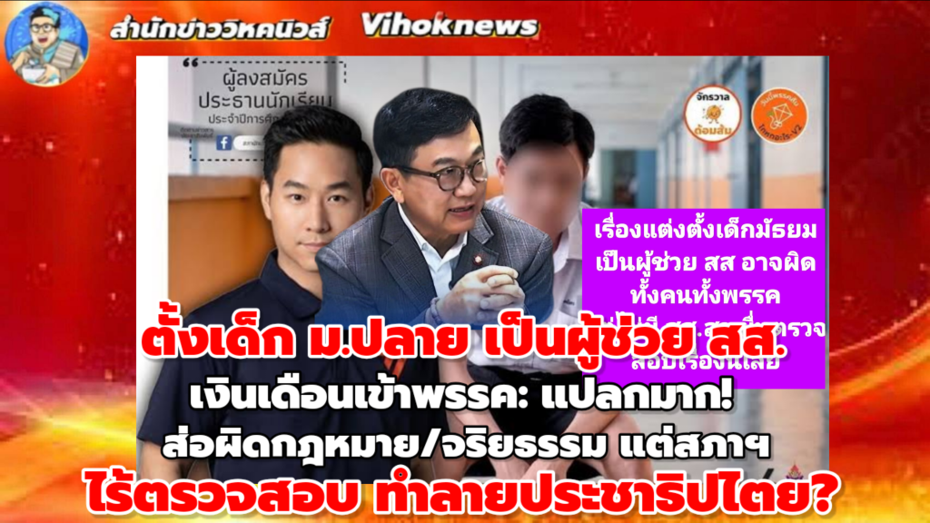 แปลกมากเรื่องแต่งตั้งเด็กมัธยมเป็นผู้ช่วย สส.และนำค่าตอบแทนรายเดือนไปใช้ในพรรค อาจผิดทั้งคนทั้งพรรค ต่างกรรมต่างวาระแต่พวกมากลากกันไป นกม.ก็ช่วยกัน ไม่เห็นมี สส.สว.ยื่นตรวจสอบเรื่องนี้เลย ประชาธิปไตยสุจริตจะเกิดขึ้นได้ไง?