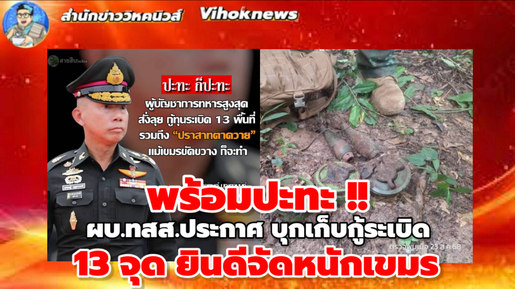 พร้อมปะทะ !! ผบ.ทสส.ประกาศ บุกเก็บกู้ระเบิด 13 จุด ยินดีจัดหนักเขมร