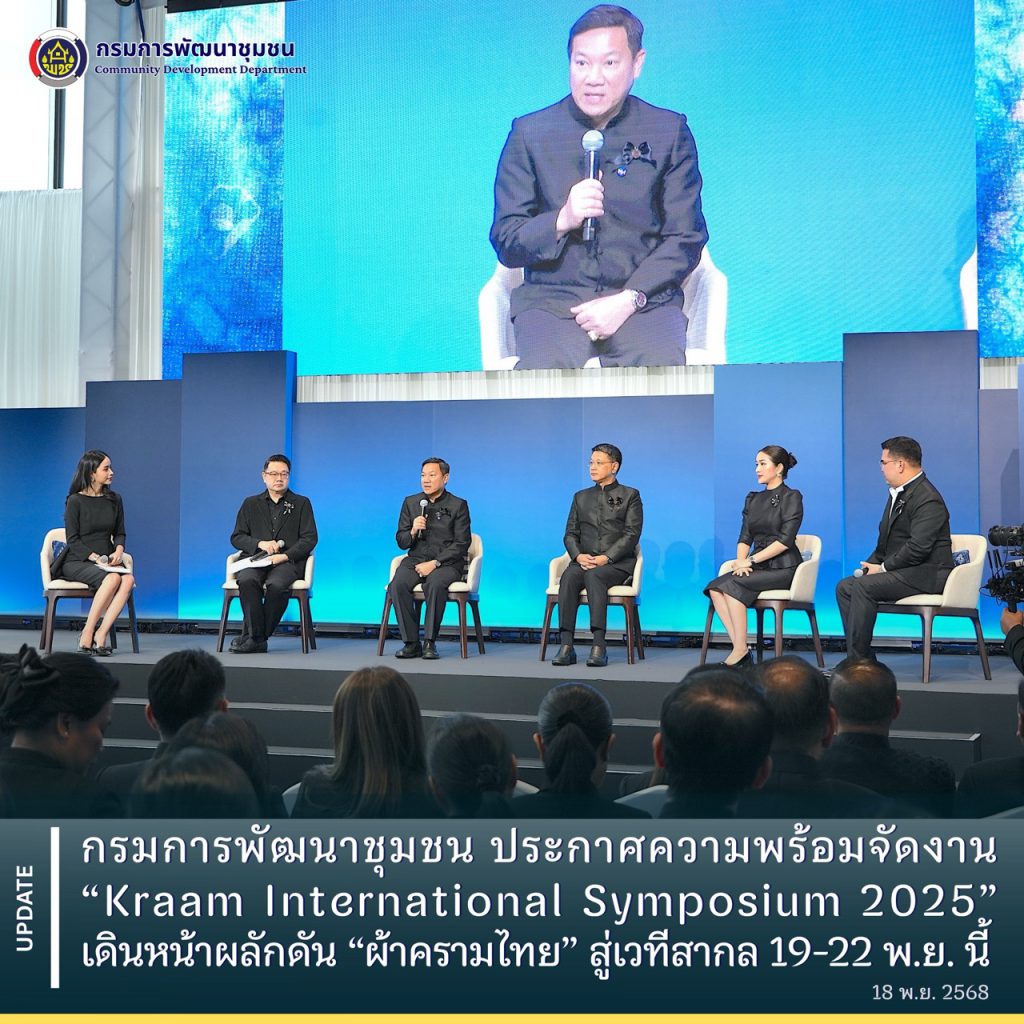 วันที่ 18 พฤศจิกายน 2568 เวลา 14.09 น. ณ ชั้น 14 เอ็มทาวเวอร์ ศูนย์การค้าเอ็มสเฟียร์ กรุงเทพมหานคร กรมการพัฒนาชุมชน กระทรวงมหาดไทย จัดงานแถลงข่าวประกาศความพร้อมในการจัดงาน “Kraam International Symposium 2025” เสวนาวิชาการระดับนานาชาติครั้งยิ่งใหญ่แห่งปี ภายใต้โครงการศึกษาและพัฒนาองค์ความรู้ผ้าย้อมครามเพื่อการพัฒนาผลิตภัณฑ์สู่สากล 2568