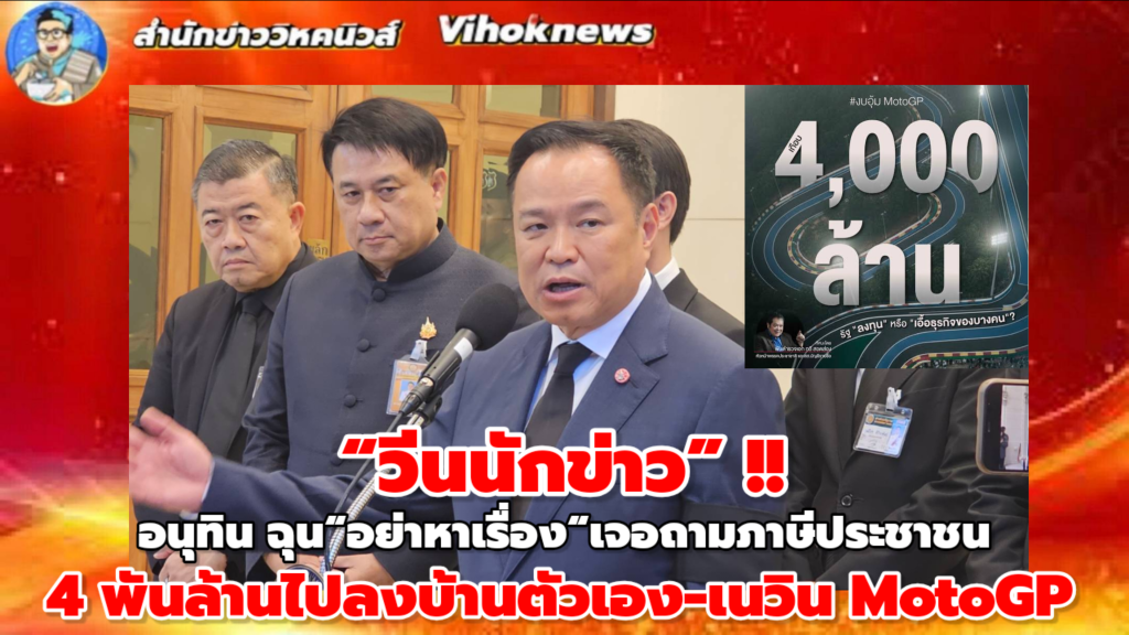 ข่าวประจำวัน » “วีนนักข่าว” !! อนุทิน ฉุน “อย่าหาเรื่อง“ เจอถามภาษีประชาชน 4 พันล้านไปลงบ้านตัวเอง-เนวิน MotoGP