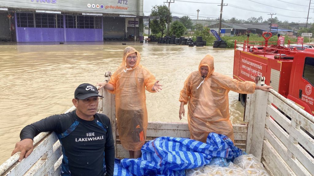 พร้อมด้วย นางสาวภคอร จันทรคณา อดีต ส.ส.บัญชีรายชื่อ-ผู้ประสงค์ลงสมัคร ส.ส.จังหวัดนนทบุรี เขต 1 พรรคประชาธิปัตย์ , นางสาวกฤษยากร สรชัย ประสงค์ลงสมัคร ส.ส.จังหวัดนนทบุรี เขต 5 พรรคประชาธิปัตย์,นายอนุรักษ์ อมรเมตตาจิตต์ ประสงค์ลงสมัคร ส.ส.จังหวัดอ่างทอง เขต 2 พรรคประชาธิปัตย์ ,นายณฐภัทรพล เอียดขาว อดีตที่ปรึกษานายกเทศมนตรีเทศบาลตำบลคลองทรายขาว อ.กงหลา จ.พัทลุง และ สมาชิก ทต.คลองทรายขาว-แม่บ้าน ร่วมทำข้าวหมกไก่+ไข่ต้ม +น้ำเปล่า 1,000 ชุด รวมของบริจาคสมทบอีกกว่า 1,000 ชุด มาร่วมลงพื้นที่มอบของช่วยเหลือประชาชน จุด 1 แยกควนลัง จุด 2 ท่าท้อน จุด 3 โคกเมา คลองแห สนามกีฬาจิระนคร ใน อ.หาดใหญ่ จ.สงขลา ที่ประสบอุทกภัยขั้นรุนแรงในรอบ 300 ปี น้ำท่วม 1-5 เมตร