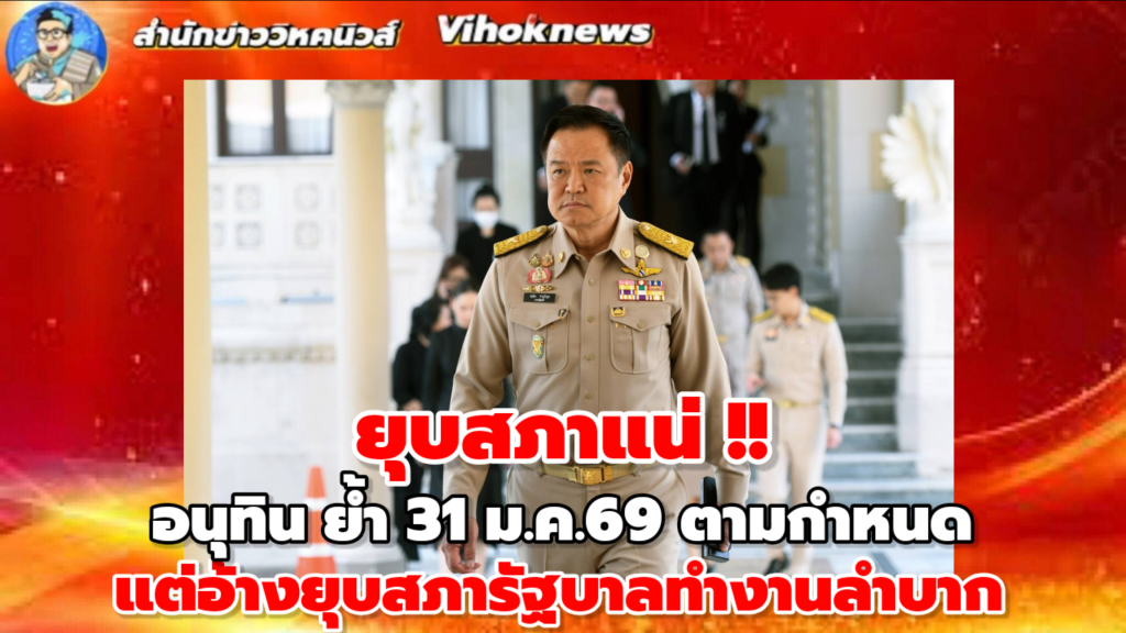 สำนักข่าวไทย – ทำเนียบ 1 ธ.ค.-“อนุทิน” ย้ำยุบสภา 31 ม.ค.69 ลั่นไม่เคยคุยเพื่อไทยขอแก้รัฐธรรมนูญก่อนยื่นอภิปราย มองยุบสภารัฐบาลทำงานลำบาก ยกมือสาธุ ผลโพลเป็นนายกฯ อันดับ 3 บอกแค่นี้ก็ดีใจแล้ว ยันไม่เคยมอง “อภิสิทธิ์” เป็นคู่แข่ง แต่ทำให้ตื่นตัวและมีสีสัน