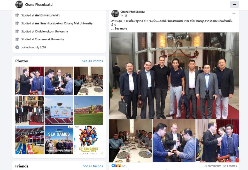 ‘ชนะ ผาสุกสกุล’ นักข่าวแมเนเจอร์ โพสต์ภาพ ‘เบน สมิธ’ ถ่ายคู่ ‘อนุทิน-เอกนิติ-อุปกิต-อภิรัชต์’ ชี้เป็นภาพหลุด สะเทือนรัฐบาลแน่ หลัง ‘อนุทิน’ แถลงผลปราบสแกมเมอร์โยงเครือข่าย ‘ยิม เลียก-เบน สมิธ’