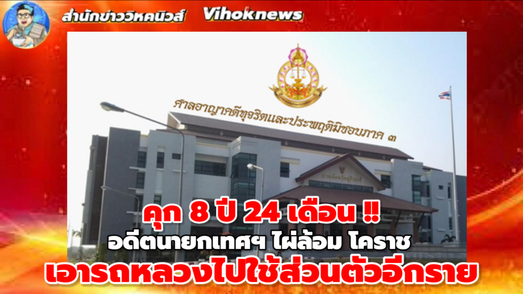 ป.ป.ช.เผยแพร่ความคืบหน้าผลคดีกล่าวหา ‘ไพบูลย์ พฤกษ์พนาเวศ’ อดีตนายกเทศมนตรีตำบลหนองไผ่ล้อม นครราชสีมา นำรถยนต์ส่วนกลางไปใช้ประโยชน์ส่วนตัวโดยมิชอบ ล่าสุด ศาลอาญาคดีทุจริตประพฤติมิชอบภาค 3 พิพากษาลงโทษจำคุก 20 ปี รับสารภาพ ลดเหลือ 8 ปี 24 เดือน ไม่เคยต้องโทษ สำนักความผิด น่าเชื่อว่าเข็ดหลาบ ให้รอลงอาญา 3 ปี
