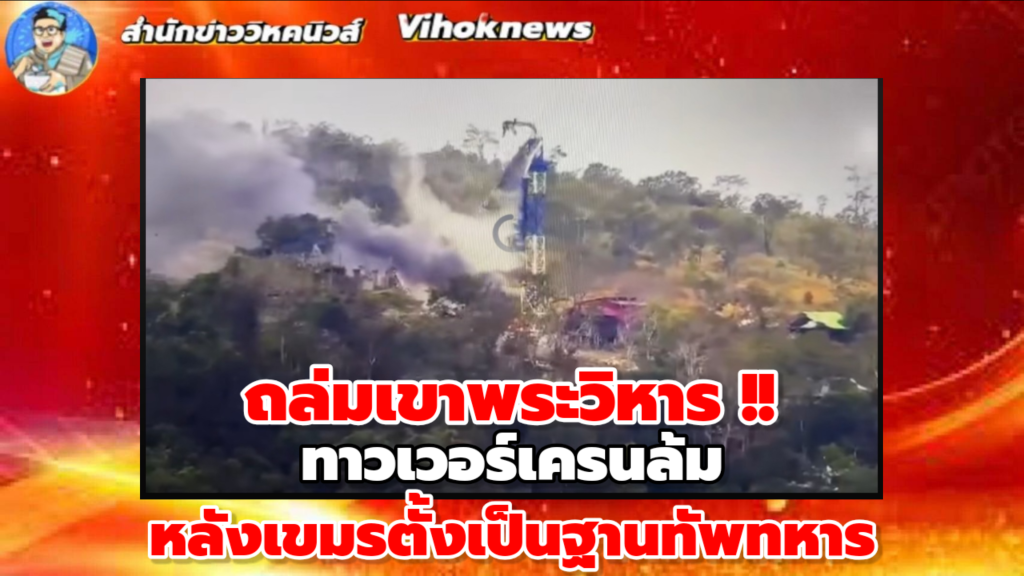 ถล่มเขาพระวิหาร !! ทาวเวอร์เครนล้ม หลังเขมรตั้งเป็นฐานทัพทหาร