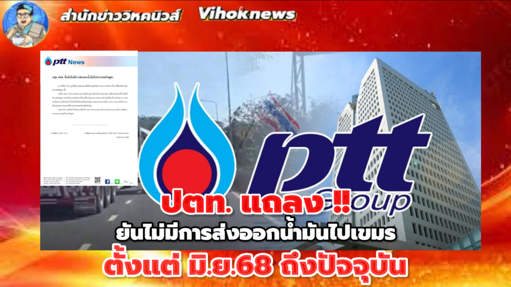 ปตท. แถลง !! ยันไม่มีการส่งออกน้ำมันไปเขมร ตั้งแต่ มิ.ย.68 ถึงปัจจุบัน
