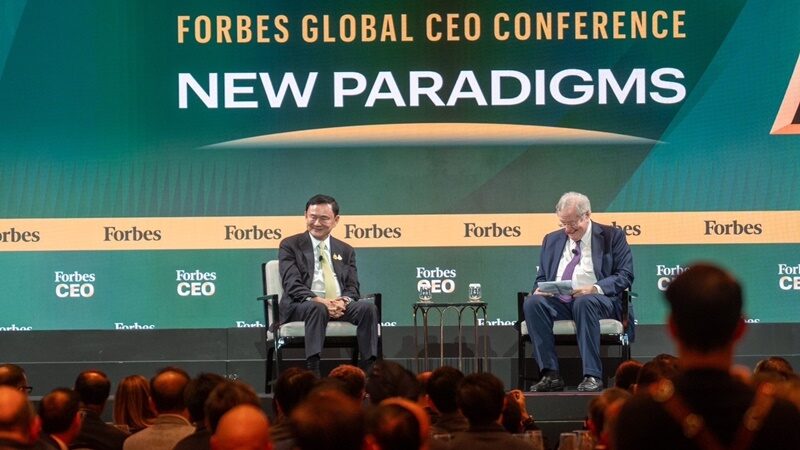 เมื่อเวลา 20.17 น. วันที่ 21 พ.ย.67 ที่โรงแรม The Ritz Carlton One Bangkok ถนนวิทยุ เขตปทุมวัน กทม. นายทักษิณ ชินวัตร อดีตนายกฯ เข้าร่วมกิจกรรมการสนทนาแบบ one-on-one ในกิจกรรมของ Forbes Global CEO Conference ครั้งที่ 22 โดย นายทักษิณ ได้พูดคุยตอบคำถาม นายสตีฟ ฟอร์บส์ ประธานและบรรณาธิการบริหารของ Forbes Media
