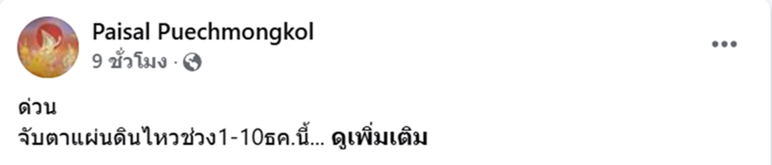 มีแหล่งข่าวยืนยันชัดเจนว่าช่วงวันที่ 1-10 ธันวาคมนี้ ให้จับตาดูเหตุการณ์ที่จะมีแผ่นดินไหว 3 เรื่อง