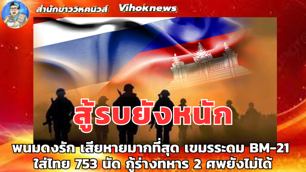 สำนักข่างอิศรา – ทภ.2 สรุปสถานการณ์สู้รบไทย-กัมพูชา ฝ่ายไทยทิ้งระเบิดโกดังจรวด BM-21ที่ยอดเขาเปี๊ยะสะแบก-ยังไม่สามารถกู้ร่าง 2 ทหารไทยที่เนิน 350 ได้-อีกฝ่ายระดมยิง BM-21 ต่อเนื่อง 97 จุด รวม 753 นัด พนมดงรักโดนหนักสุด 565 นัด