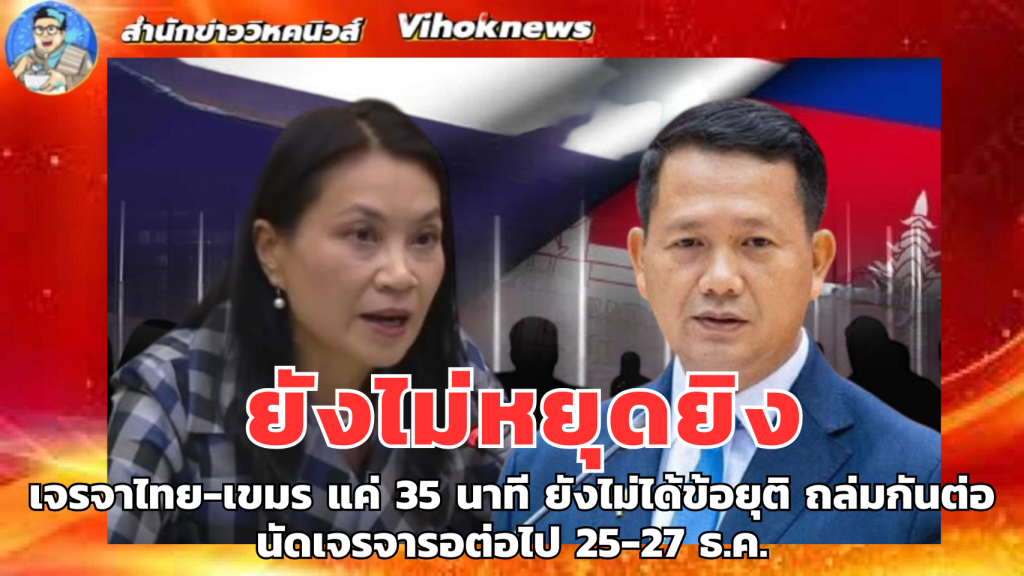 บรรยากาศชายแดนไทย-กัมพูชา มีการประชุม GBC ระดับเลขานุการตามนัดหมาย ณ ด่านถาวรบ้านผักกาด จ.จันทบุรี เมื่อช่วงเย็นวันนี้(24 ธันวาคม 2568) โดยการหารือรอบแรกจบลงอย่างรวดเร็วภายในเวลาเพียง 35 นาที