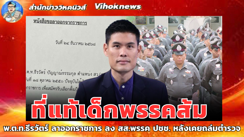 ด้วยข้าพเจ้า พ.ต.ท.ธีรวัตร์ ปัญญาณธรรมกุล ตำแหน่ง สว.(สอบสวน) หัวหน้างามคดีสน.สายไหม เริ่มรับราชการ เมื่อวันที่ 18 ตุลาคม 2550 ปัจจุบันได้เงินเดือนระดับ ส.๓ ชั้น20 (39,880 บาท) มีความประสงค์ขอลาออกจากราชการ เพื่อสมัครรับเลือกตั้งเป็นสมาชิกสภาผู้แทนราษฎร ตั้งแต่วันที่ 24 ธันวาคม2568
