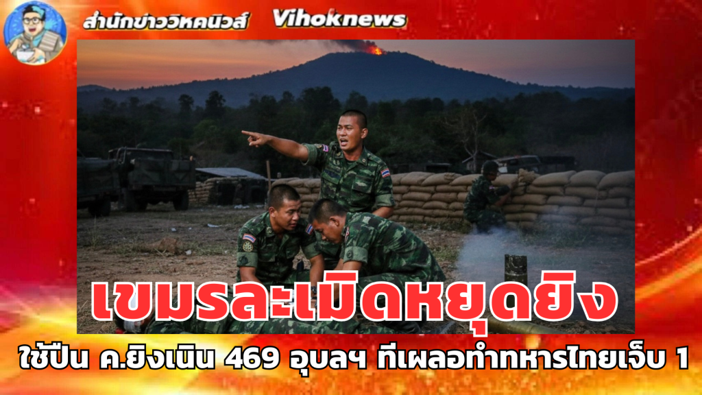 PPTV36 – เมื่อวันที่ 6 ม.ค. 2569 พล.ท.วีรยุทธ รักศิลป์ แม่ทัพภาคที่ 2 เปิดเผยถึงกรณีตรวจพบการยิงปืน ค. เข้ามายังพื้นที่เนิน 469 บริเวณช่องบก จังหวัดอุบลราชธานี ส่งผลให้กำลังพลทหารไทยได้รับบาดเจ็บ 1 นาย จากสะเก็ดระเบิด เบื้องต้นอยู่ระหว่างการตรวจสอบข้อเท็จจริงและที่มาของเหตุการณ์ พร้อมยืนยันว่ากองทัพภาคที่ 2 จะติดตามสถานการณ์อย่างใกล้ชิด หากมีความคืบหน้าเพิ่มเติมจะแจ้งให้ทราบต่อไป
