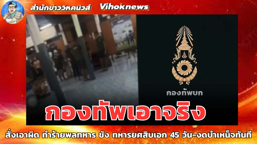 มติชน – ทบ. สั่งจำขัง ‘ทหารยศสิบเอก’ 45 วัน พร้อมงดบำเหน็จ หลังปรากฏคลิปทำร้ายพลทหาร ย้ำทุกคนภายในองค์กร เปรียบเสมือนเพื่อนรักร่วมชีวิตการทำงาน ต้องอยู่กันด้วยความรัก-สามัคคี