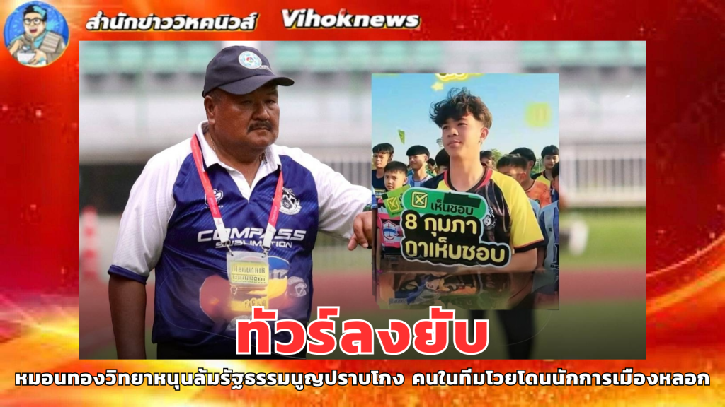 “หมดศรัทธา!” วงการฟุตบอลนักเรียนเสื่อมเสียเพราะผู้ใหญ่เห็นแก่ตัว! ทีมฟุตบอล “หมอนทองวิทยา” ที่เคยโด่งดังสร้างชื่อเสียง กลับต้องมาตกม้าตายเพราะถูกลากเข้าไปเปื้อนโคลนการเมือง! คลิปหลุดว่อนเน็ต “จาตุรนต์ ฉายแสง” นักการเมืองเพื่อไทย บุกสนามซ้อม เกณฑ์เด็กนักเรียนตาดำๆ มาถือป้าย “8 กุมภา กาเห็นชอบ” เชียร์แก้รัฐธรรมนูญหน้าตาเฉย! ทำเอาชาวเน็ตเดือดพล่าน! นี่มันโรงเรียนหรือค่ายการเมือง? เอาเด็กมาเป็นตัวประกันเพื่อผลประโยชน์ของตัวเองได้ยังไง!