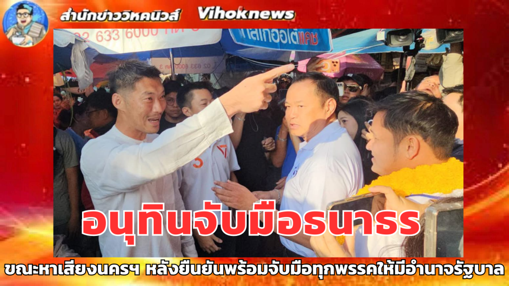 PPTVHD36 – นายอนุทิน ชาญวีรกูล หัวหน้าพรรคภูมิใจไทย เดินทางลงพื้นที่จังหวัดพระนครศรีอยุธยา ช่วยผู้สมัคร สส. พระนครศรีอยุธยา ของพรรคภูมิใจไทยหาเสียง ระหว่างเดินอยู่ในตลาดเจ้าพรหม นายอนุทิน ได้พบกับ นายธนาธร จึงรุ่งเรืองกิจ ประธานคณะก้าวหน้า ซึ่งเมื่อพบกัน นายธนาธรได้โบกมือให้