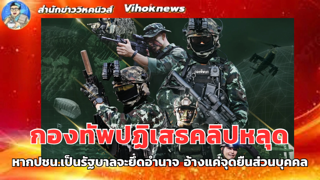 ‘กองทัพบก’ โต้คลิปเสียง ‘นักการเมือง’ ปูด ‘พรรคประชาชน’ เป็นรัฐบาล จะมียึดอำนาจ ลั่น ไม่ใช่ท่าที-จุดยืน ทบ. ชี้ คลิปเสียงเป็นความเห็นระดับบุคคล ไม่ใช่ผู้แทน-ไม่ใช่ผู้ที่มีส่วนเกี่ยวข้อง ทบ. โดยตรง เนื้อหาไม่น่าเชื่อถือ