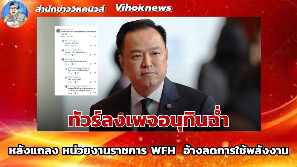 ทัวร์ลงเพจอนุทินฉ่ำ !! หลังแถลง หน่วยงานราชการ WFH อ้างลดการใช้พลังงาน