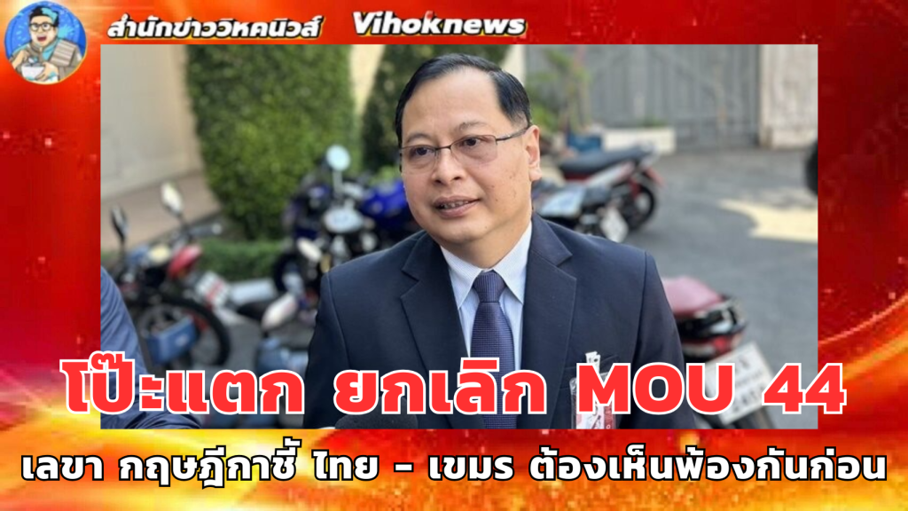 TheReporters – POLITICS: เลขาฯ กฤษฎีกา โยน กต.แจงปมยกเลิก MOU 44 ชี้ ทำได้หากไม่กระทบกฎหมายระหว่างประเทศ ย้ำ ไทย-กัมพูชา ต้องเห็นพ้องตั้งกติกานับหนึ่งใหม่