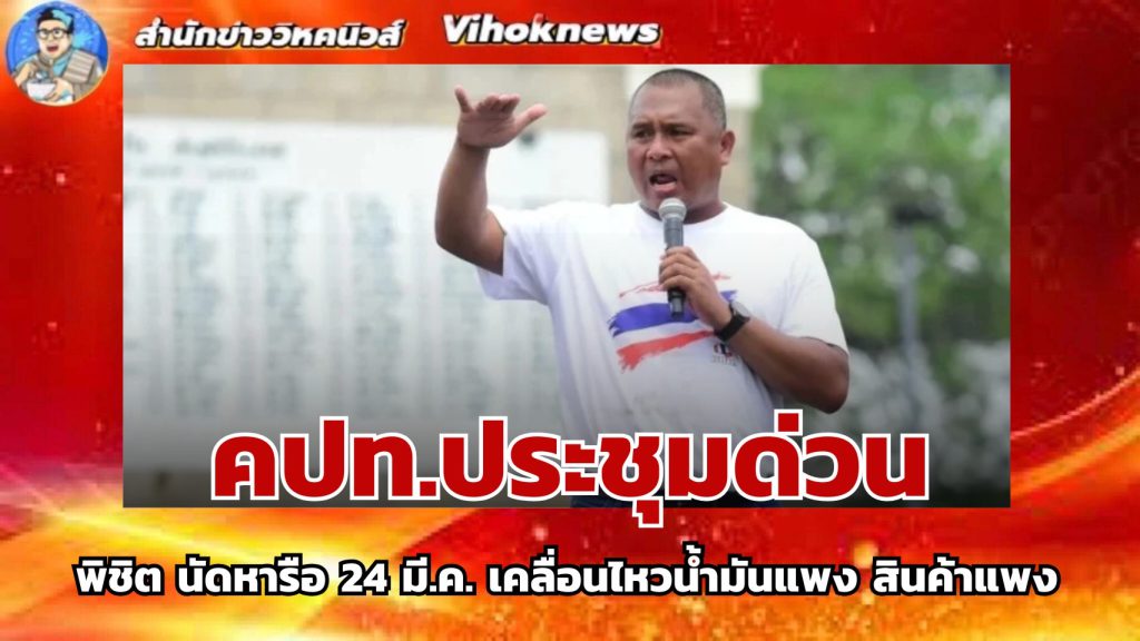 22 มี.ค.2569- นายพิชิต ไชยมงคล แกนนำเครือข่ายนักศึกษาประชาชนปฏิรูปประเทศ (คปท.) และกลุ่มรวมพลังแผ่นดินปกป้องอธิปไตย โพสต์ข้อความผ่านเฟซบุ๊ก Pichit Chaimongkol ระบุว่า “อังคาร 24 มี.ค.รวมพลังแผ่นดิน ประชุมสถานการณ์โลก-ไทย โครงสร้างน้ำมันไทยไปอย่างไรกันต่อ”