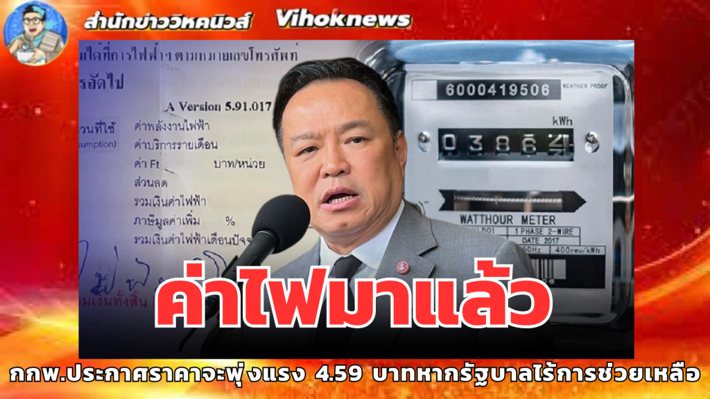 ค่าไฟมาแล้ว !! กกพ.ประกาศราคาจะพุ่งแรง 4.59 บาทหากรัฐบาลไร้การช่วยเหลือ