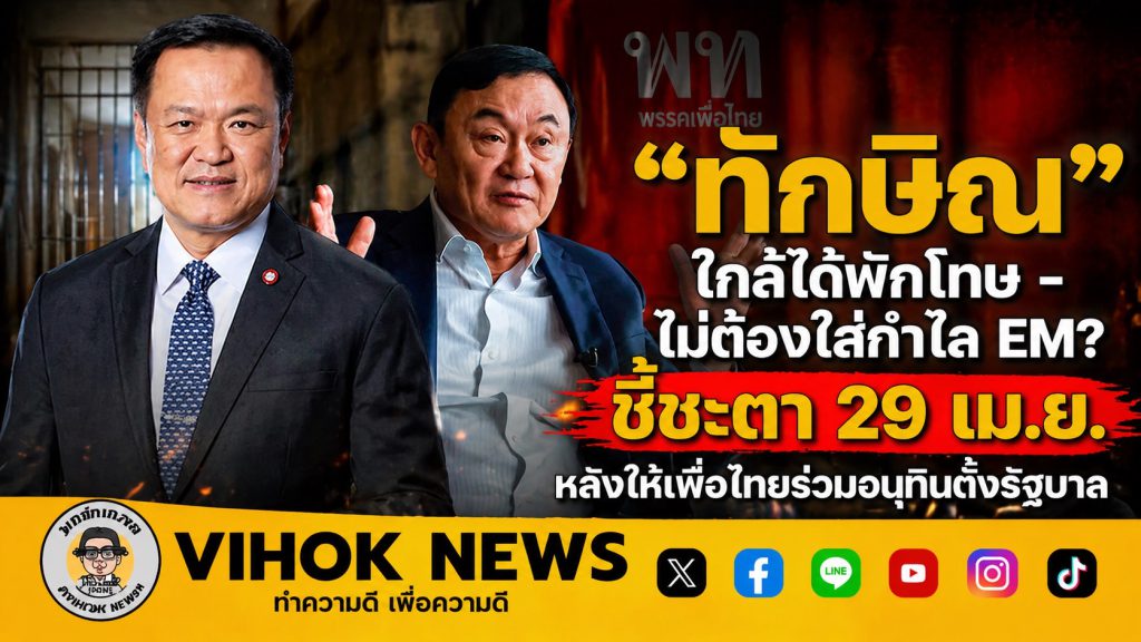 “ทักษิณ” ใกล้ได้พักโทษ – ไม่ต้องใส่กำไล EM? ชี้ชะตา 29 เม.ย.หลังให้เพื่อไทยร่วมอนุทินตั้งรัฐบาล